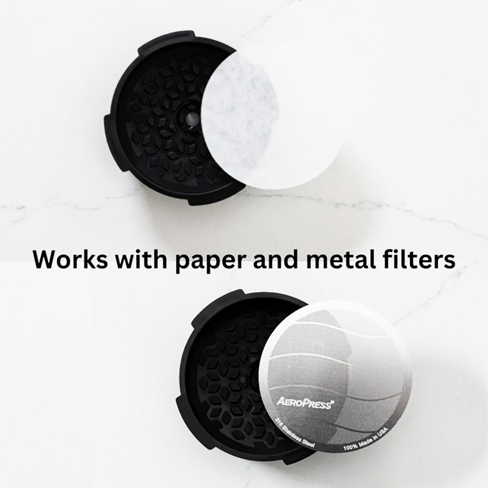 I modsætning til lignende tilbehør, passer AeroPress Flow Control Filter Cap perfekt sammen med AeroPress Original, AeroPress Go og AeroPress Clear -kaffebryggeren, både med metal- og papirfiltre – uanset om de bruges sammen eller hver for sig.