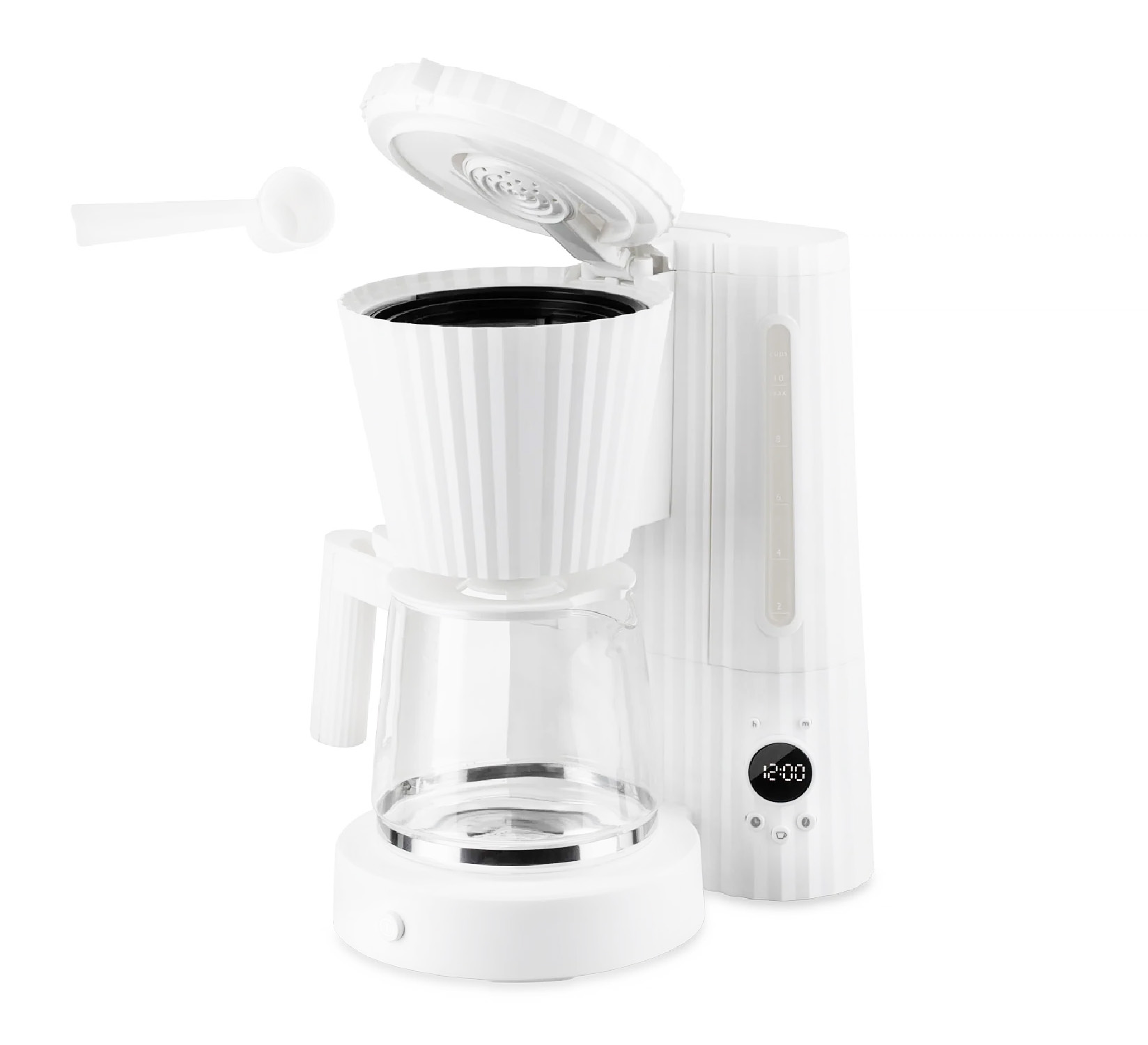 The Alessi Plissé Drip Coffee Maker is ideal for brewing generous coffee batches with outstanding aroma extraction. It's equally suitable for creating a cozy family brew at home or preparing the finest coffee for your colleagues at the workplace. Enjoy waking up to the delightful aroma of freshly brewed coffee, thanks to its automatic start feature.