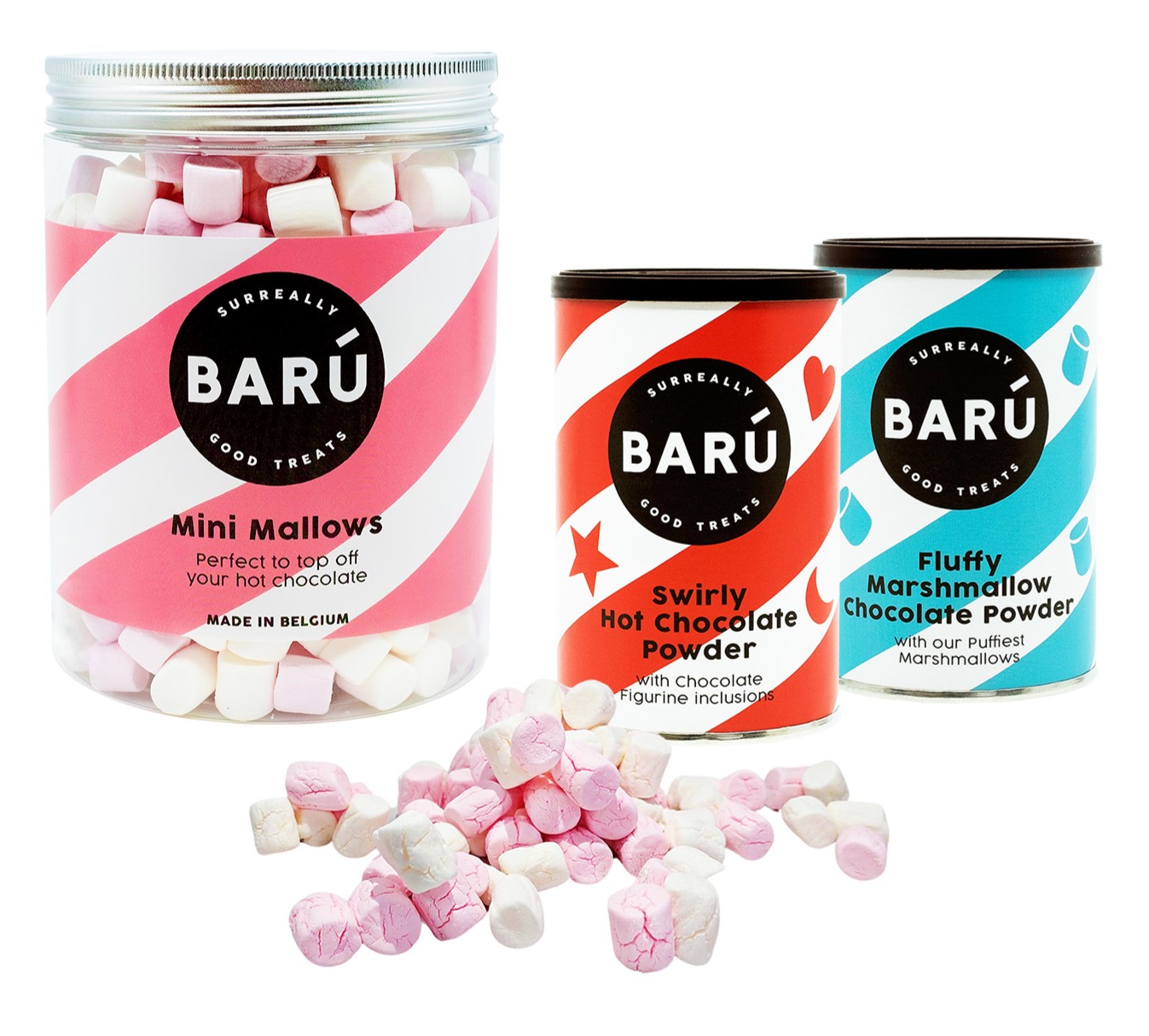 - Tag en hyggelig stund med dette uimodståelige knippe Barú-godbidder, luftige minimarshmallows og fyldig varm chokolade!