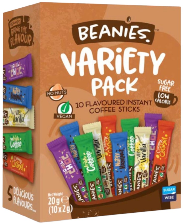 T.d.Beanies Variety Pack smagsat instantkaffe, 10 portionspakninger