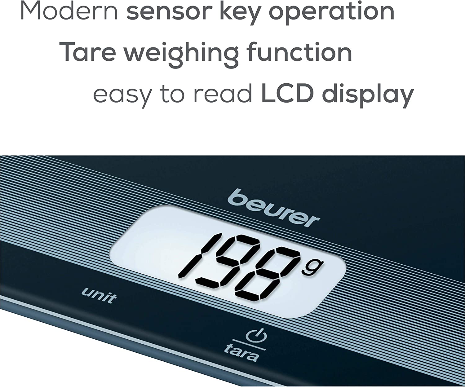 Beurer KS 19 digitale køkkenvægt har en kapacitet på op til 5 kg, måleresultaterne vises i 1 grams intervaller. Vej blandt andet dine bage- og madlavningsingredienser med denne praktiske lille vægt. Takket være det ultraflade design (højde: kun 1,65 cm) fylder vægten yderst lidt plads i køkkenet.