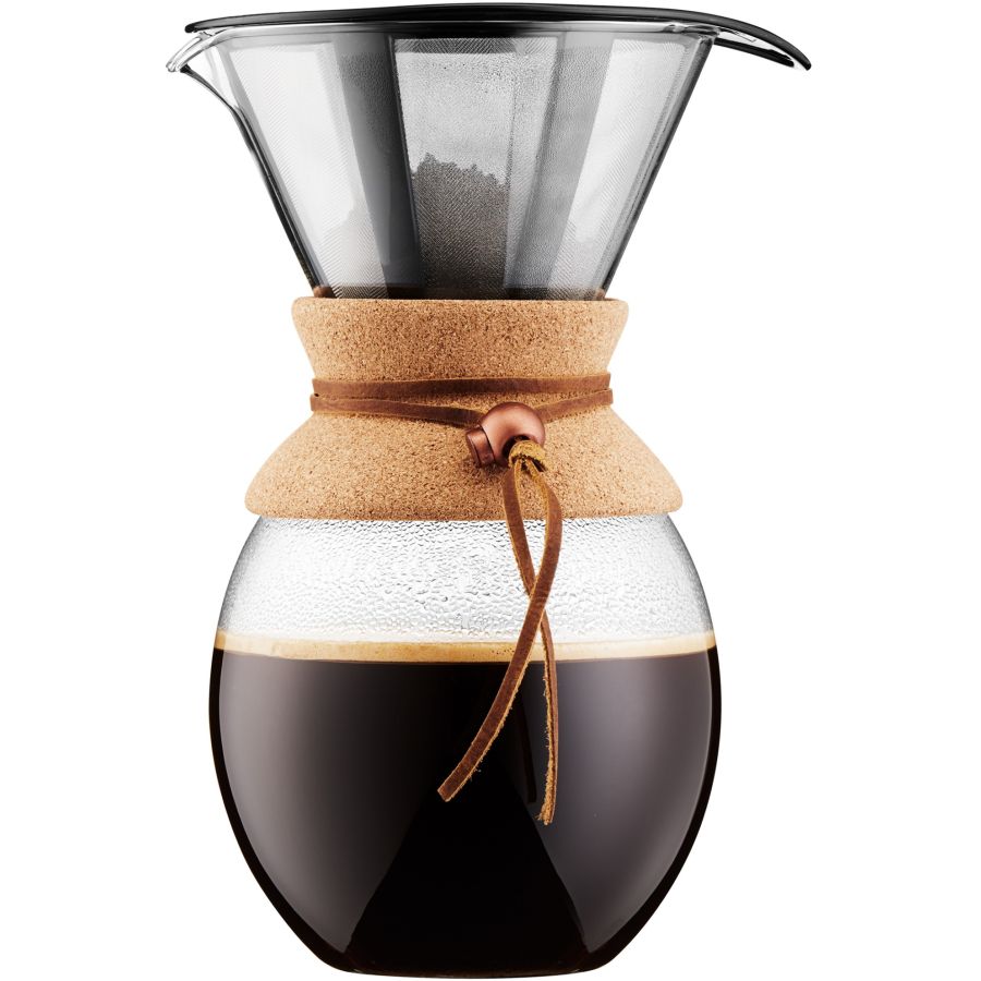 Bodum Pour Over Coffee Maker kaffekanden har en fin filter i rustfrit stål, ingen papirfiltre er nødvendige mere. Stålfiltret favoriserer udviklingen af kaffets rene smag - ingen papirfiltre der opfanger de æteriske olier og smage.