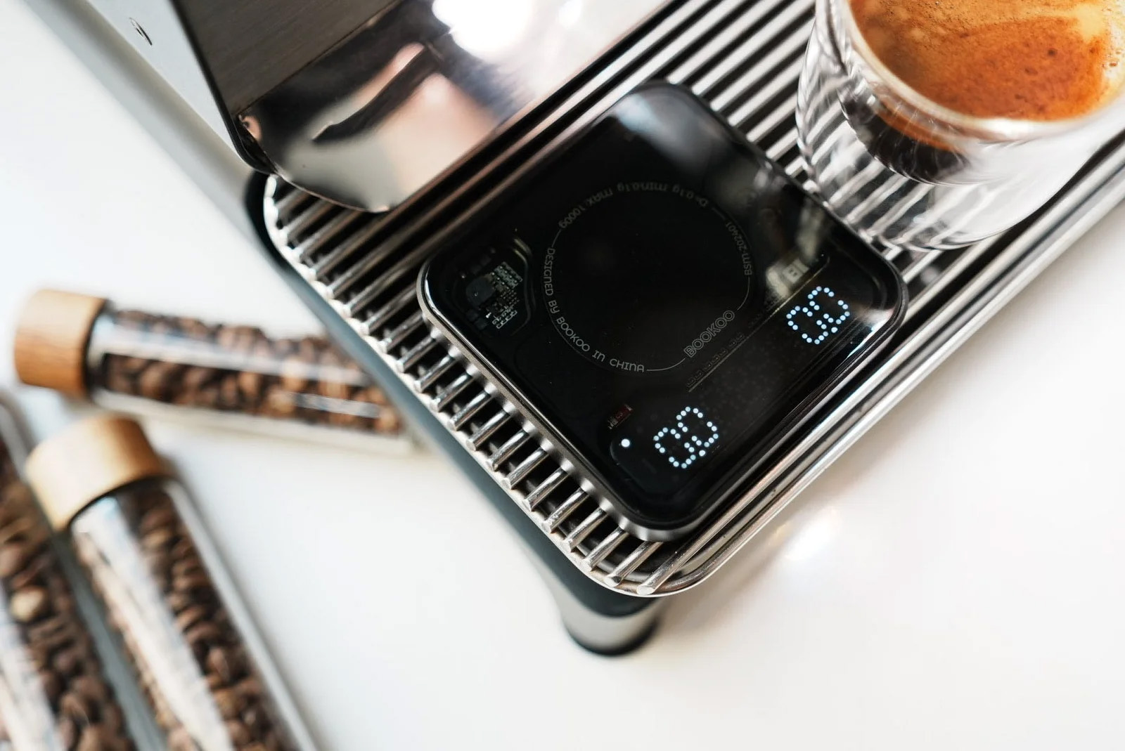 BooKoo Themis Mini kaffevægten er en rigtig game-changer for espressoelskere, der kræver præcision og konsistens. På trods af sin kompakte størrelse er den kraftfuld og designet til at passe smidigt på din espressomaskines drypbakke uden at være i vejen.