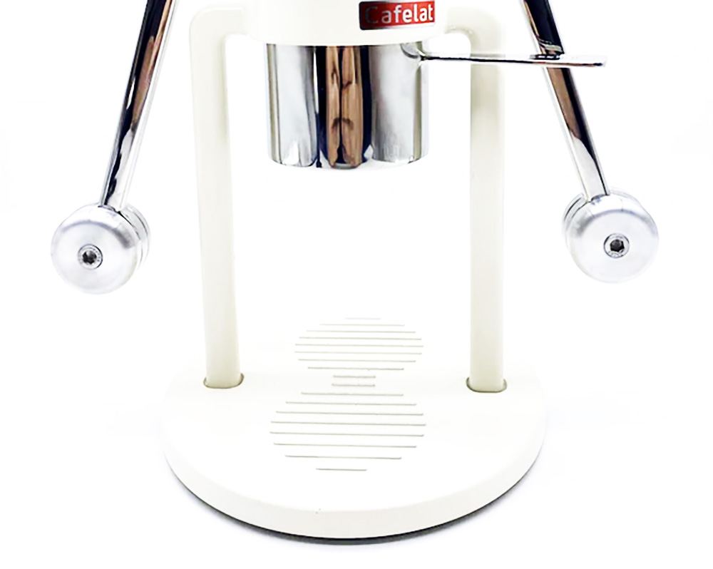 Cafelat Robot-espressomaskinen leveres som standard med et par hænder, der ser ud som hovedet på en skruenøgle.
