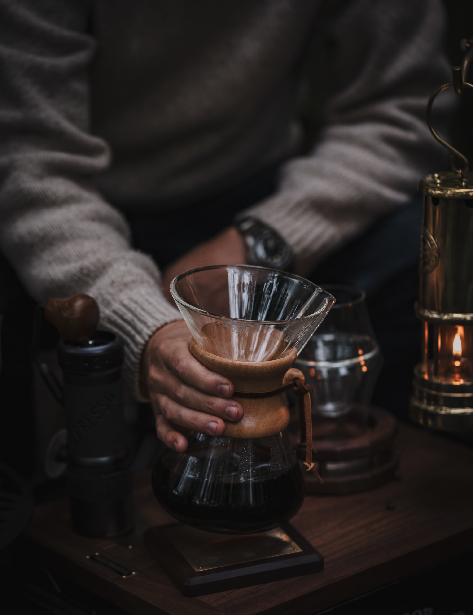 Vi købte Chemex til at lave større mængder kaffe (mere end to kopper) og den har fungeret godt til dette formål. Den tilbyder næsten lige så gode variationsmuligheder som V60 og desuden klart mere kapacitet, så længe man husker, at glaskanden ikke holder drikken varm særlig længe. At vikle et køkkenhåndklæde omkring kanden og bruge et låg hjælper med at bevare temperaturen. Rengøring er let, og filtrene kan nemt komme i kompostaffaldet. Derudover er Chemex så stilfuld, at den ikke let ødelægger dagen for selv den mest kritiske indretningsentusiast. Jeg anbefaler den, og man kan naturligvis også let lave mindre mængder kaffe med den.