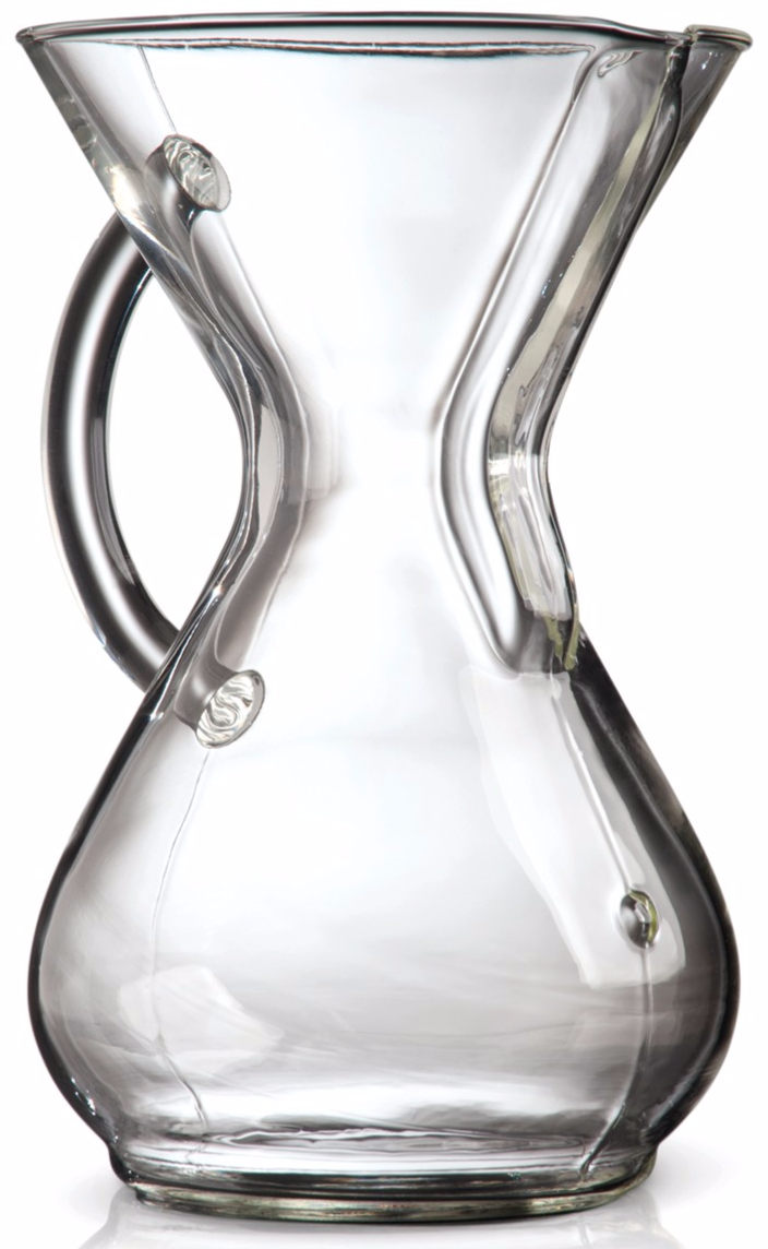 Chemex er en simpel og stilfuld måde at brygge og servere kaffe på! I Chemex bruges filterpapir, der er tykkere end normalt. Den langsommere brygningsproces giver vandet mere tid til at ekstrahere alle de gode aromaer ud af kaffen, samtidig med at det forhindrer de mindste partikler i at ende i den bryggede kaffe. Du får et fyldigt, klart resultat.