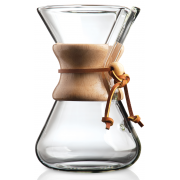 Chemex er en simpel og stilfuld måde at brygge og servere kaffe på! I Chemex bruges filterpapir, der er tykkere end normalt. Den langsomme brygningsproces giver vandet mere tid til at ekstrahere alle de gode aromaer fra kaffen, samtidig med at den forhindrer de mindste partikler i at ende i det bryggede kaffe. Du får et fyldigt, klart resultat.