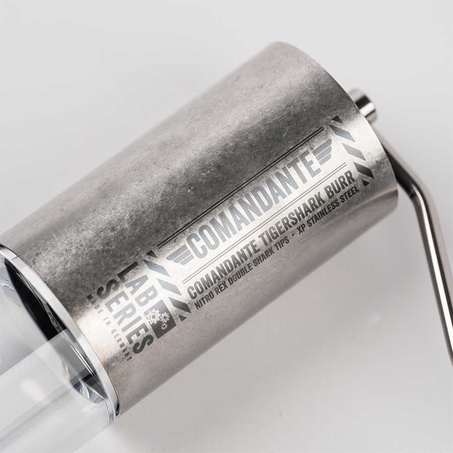 Comandante® C40 Mk4 Tigershark kaffekværn kombinerer avancerede materialer, en opdateret kværnsuspension og en ubrudt polymerglas-beholder til kaffebønner for at levere et mere smidigt arbejdsflow. Kværnens lavere vægt og forbedrede holdbarhed gør den ekstra let at håndtere.