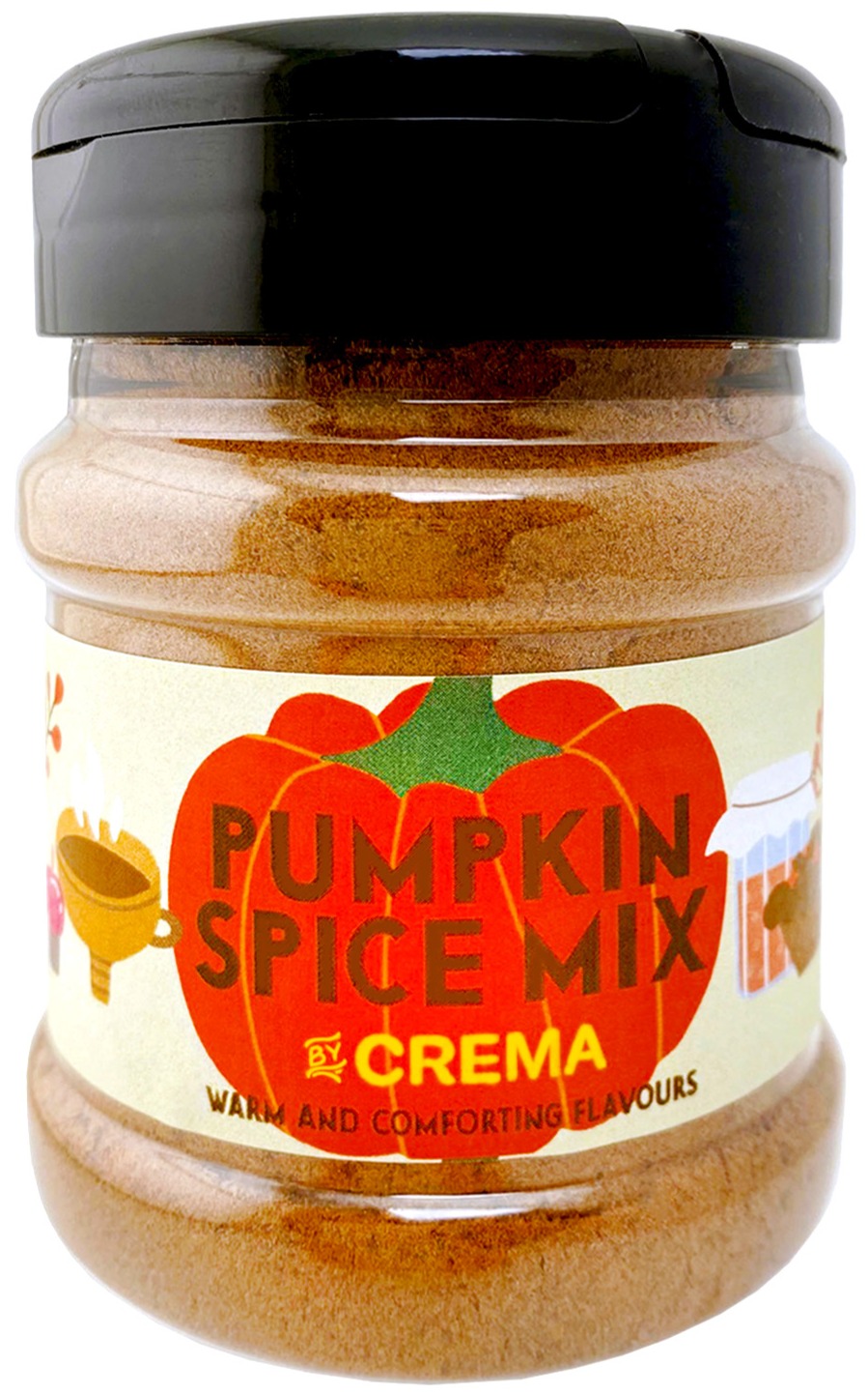 Crema Pumpkin Spice krydderblanding med varm og trøstende smag af kanel, muskatnød, ingefær og nelliker. Drys lidt over din morgenlatte, i bagværk eller sæsonretter og lad den hyggelige duft af Pumpkin Spice fortrylle!