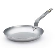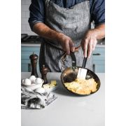 De Buyer Mineral B Element omeletpanden i kulstål har en afrundet kant, designet specielt til at vende omeletten og nemt skubbe den over på en tallerken. Kulstål tåler høje temperaturer og karamelliserer væsker, hvilket gør det til det perfekte materiale til at lave lækre omeletter, der er sprøde på ydersiden og bløde på indersiden.