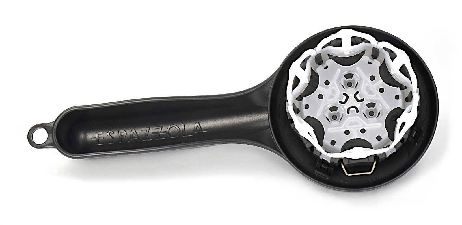 Espazzola 2+3-58 er et professionelt værktøj til rengøring af bryggruppen i espressomaskinen. Espazzola monteres i gruppehovedet på samme måde som en portafilter, og værktøjet bruger det varme vand fra espressomaskinen til en grundig rengøring og fjernelse af kaffeblandinger. I stedet for at rengøre bryggruppen manuelt, rengør espressomaskinen sig næsten automatisk med hjælp fra Espazzola.