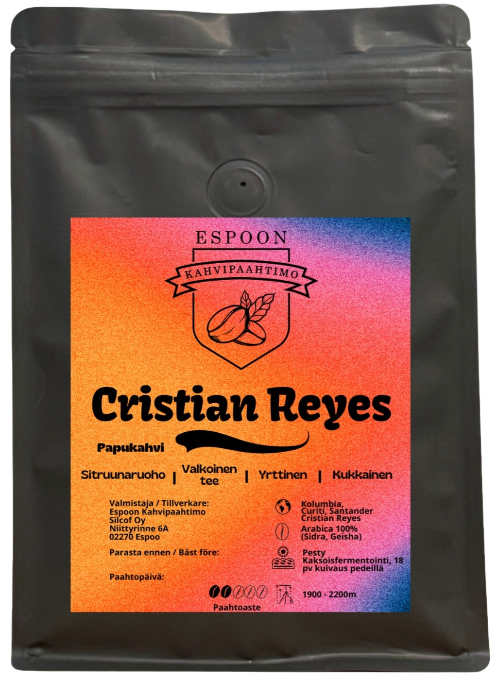 Espoon Kahvipaahtimo Cristian Reyes Sidra & Geisha Blend 200 g kaffebønner