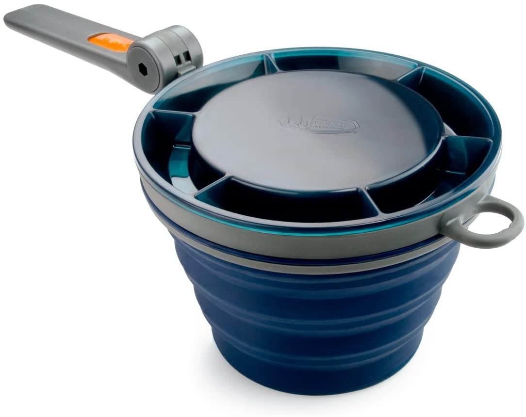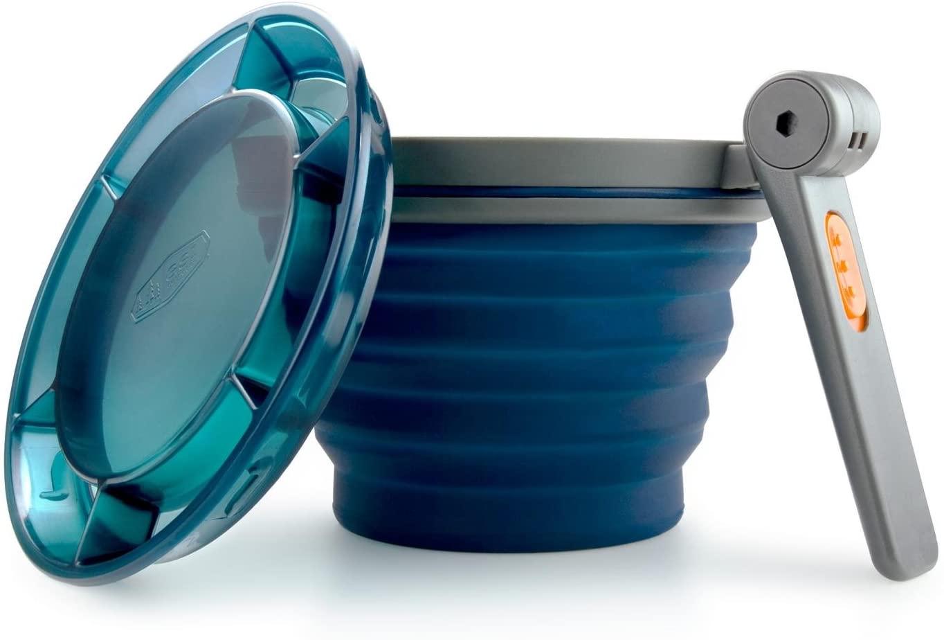 GSI Outdoor original sammenklappelig Fairshare-krus med et sammenklappeligt håndtag, der kan låses i to positioner, en sammenklappelig silikonekrus, der ekspanderer fra kun 4,3 cm høj til en generøs kapacitet på 680 ml.