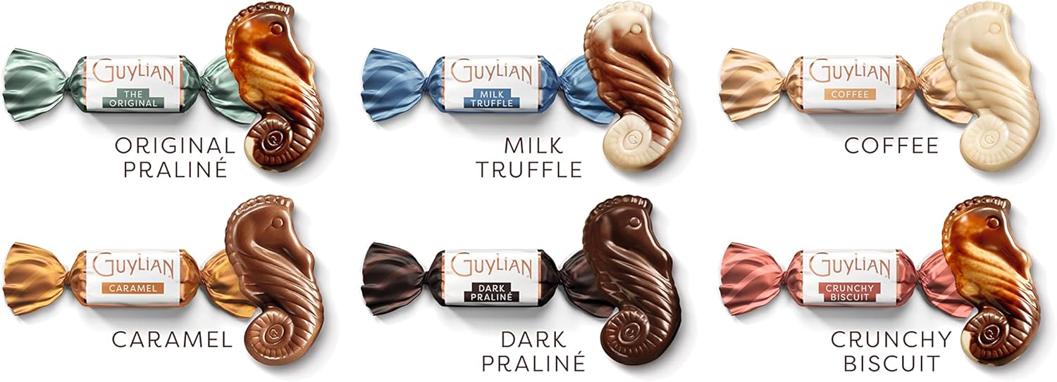 Guylian belgiske chokoladepraliner er fremstillet af høj kvalitet Fair Trade ingredienser og individuelt indpakket. Denne gaveæske er enkel at give væk, og de seks lækre smagsvarianter værdsættes af alle.