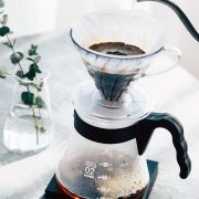 Manuel kaffefiltrering med Hario som i gamle dage før kaffemaskiner. Sjovt og det bliver godt.