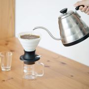 Med Hario Dripper Switch får du altid et godt slutresultat. Grundopskriften er 20 g mellemgroft kaffe og 240 g varmt vand, som skal brygge i 2 minutter. Prøv dig frem med forskellige formalingsgrader, bryggetider og varier mængden af kaffe og vand!