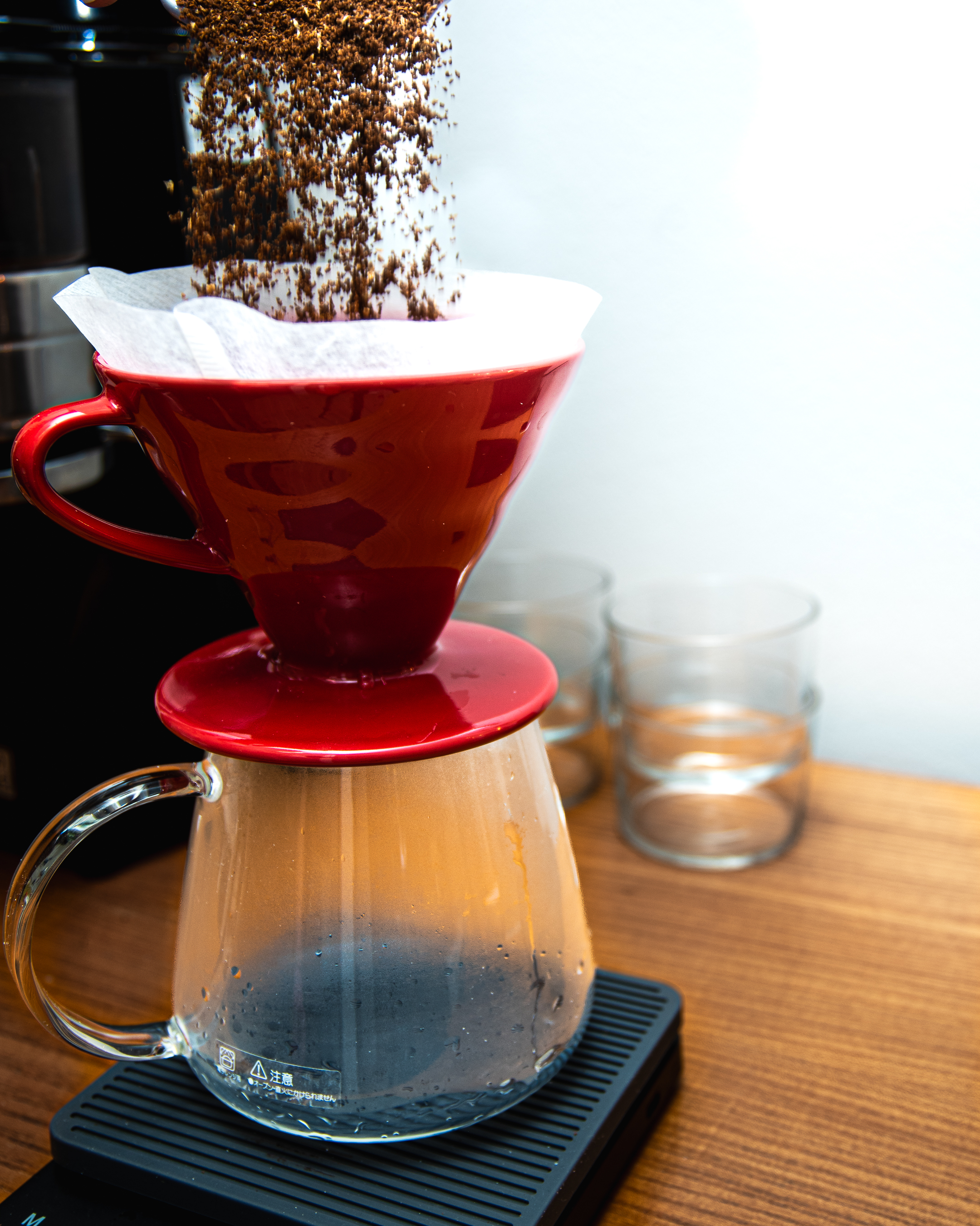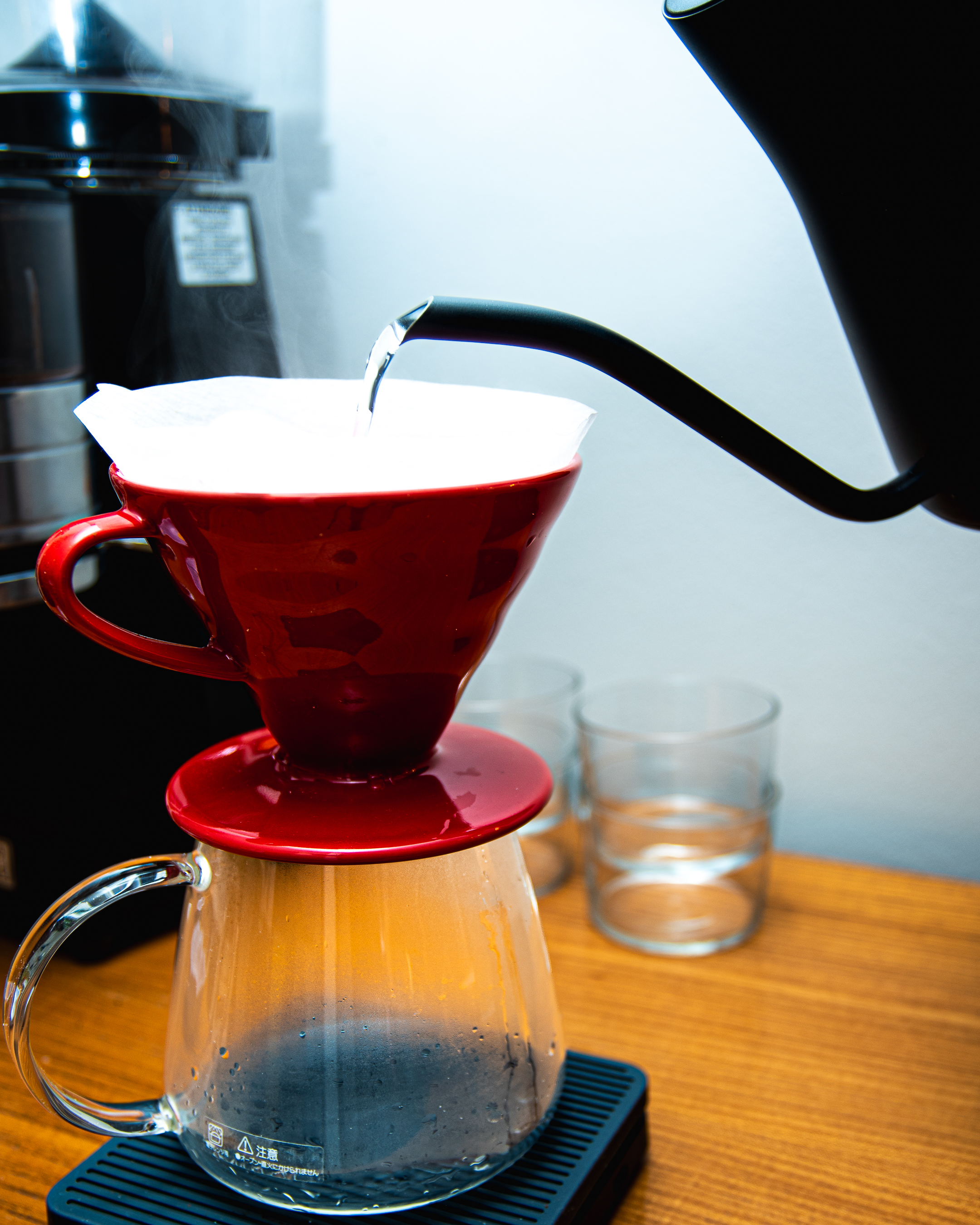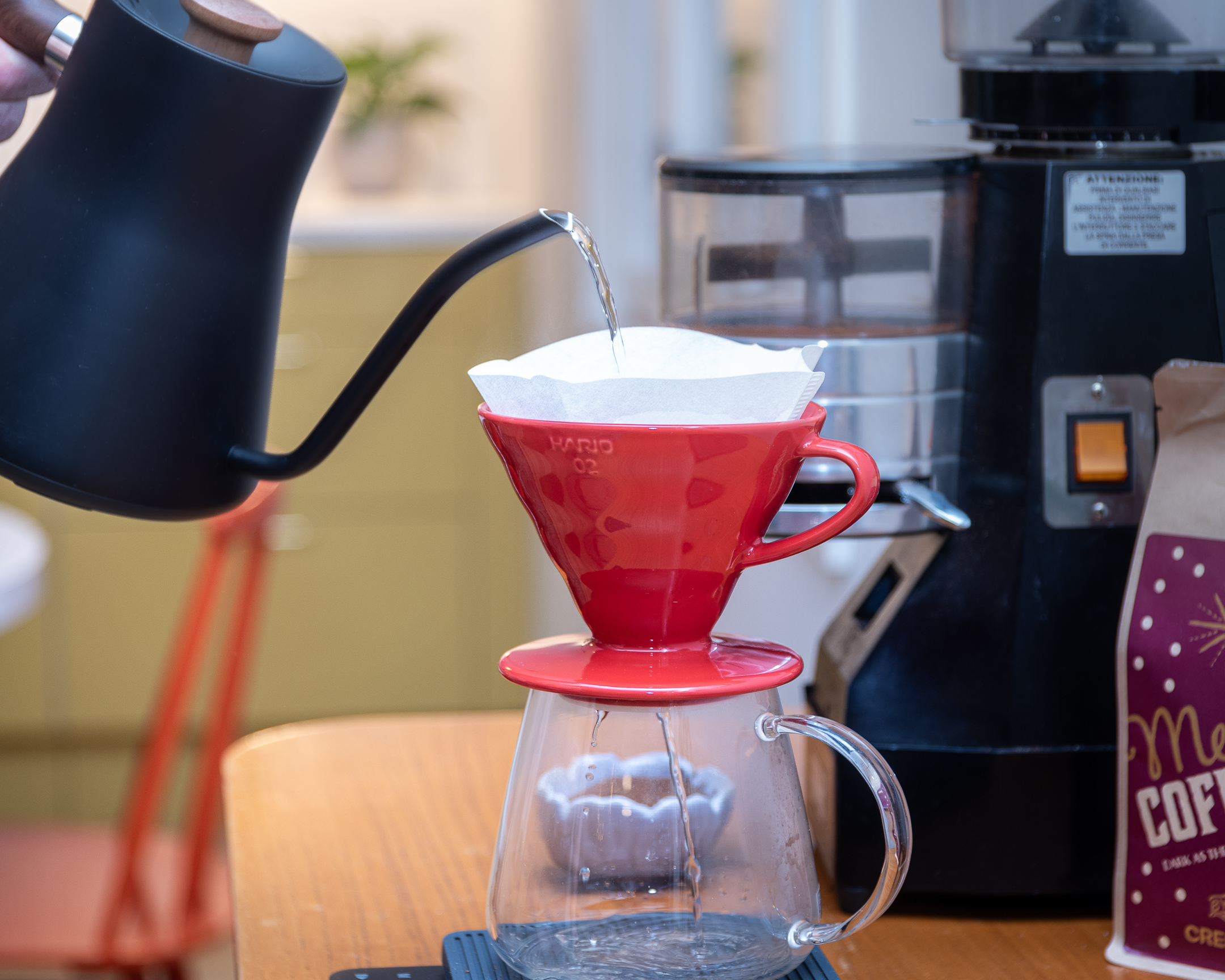 For de bedste resultater, hæld vandet i en jævn, rolig og konstant strøm, for eksempel med hjælp fra Hario Buono-kedlen.