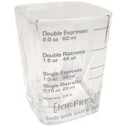 Ganske okay måleglas til at måle mængden af kaffe og til at øve synsmåling. Glasset mangler dog en ordentlig hældetud og kant, så det spilder meget nemt kaffe på bordet. Det er bedst at "hælde" espressoen hurtigt i koppen.