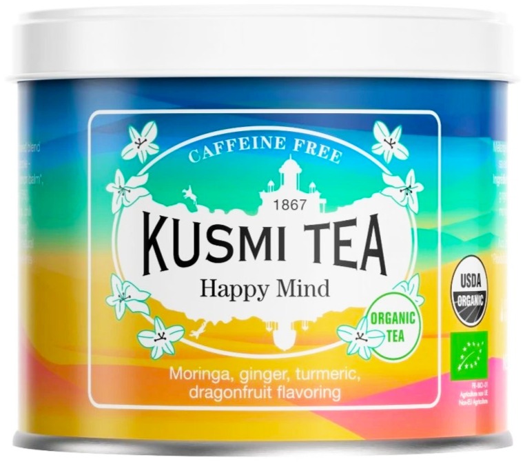 Kusmi Organic Happy Mind er en økologisk urtete-blanding skabt til at løfte humøret og skabe en følelse af velvære.