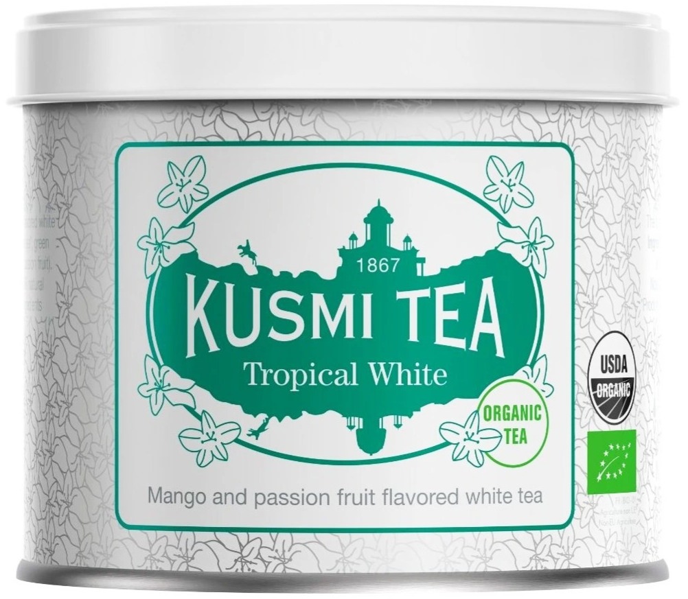 Kusmi Organic Tropical White Tea er en økologisk hvid te med en frugtig, tropisk karakter. Den lette og friske smag byder på bløde frugtnoter og en naturligt sød afslutning.