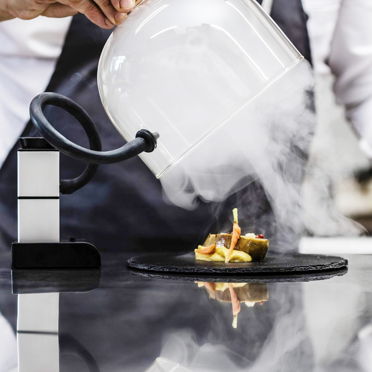 Med Lacors røgpistol kan du fremstille forskellige røgede ingredienser og madvarer. Madrøgeren har en aftagelig overdel og en dråbebakke til tjæren, der drypper fra røgen.