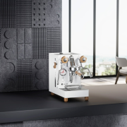- LELIT58 2-vejs portafilter med håndtag i røget eg, ædelstensformet design og Coffee Slide-tud