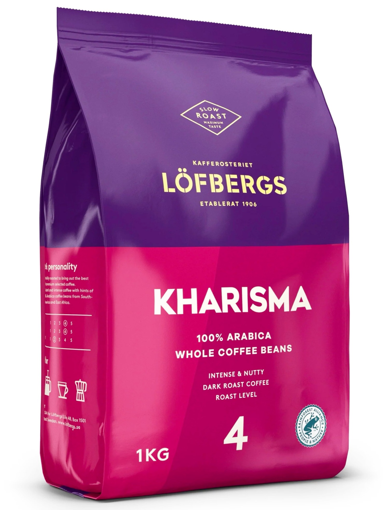 Löfbergs Kharisma er en mørkristet og smagfuld kaffe med intens aroma og nøddeagtige toner. Du finder også behagelige nuancer af kakao i eftersmagen.