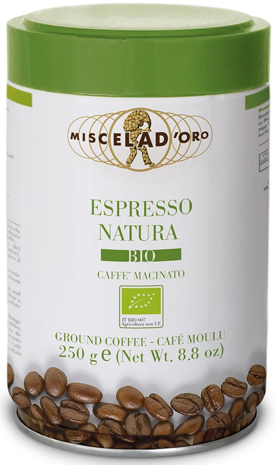 Miscela d'Oro Espresso Natura er en blanding af højklasse Arabica (50 %)- og Robusta (50 %)-kaffe. Denne mørkristede, fyldige espressokaffe kan nydes som den er eller i mælkekaffen. Espresso Natura er meget blød og fyldig i smagen med en sødme og syrlighed i perfekt balance. Den lange eftersmag krone smagsoplevelsen. Passer godt som den er, men er også ypperlig i mælkekaffen.