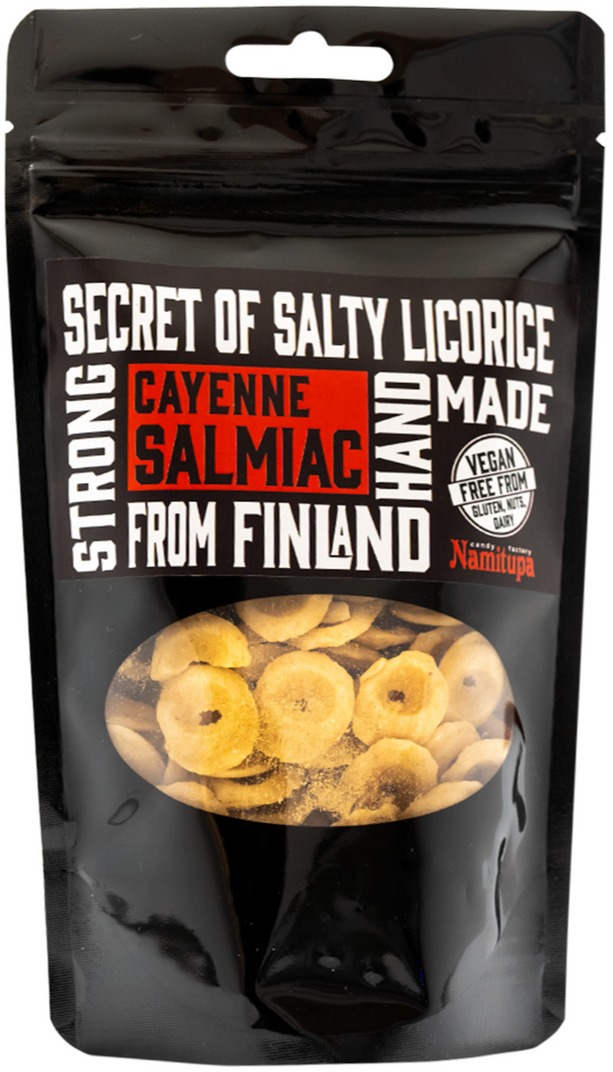 Namitupas Cayennesalmiak giver et peberagtigt kick, der varmer munden og kilder smagsløgene – tilpas stærk, præcis som den skal være. Smag og bliv begejstret!