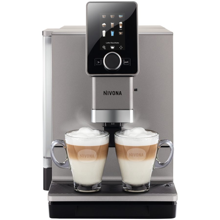 Den fornyede Nivona 900-serien kaffemaskine byder på en større kulinarisk glæde og forbedret brugervenlighed: kaffe, cappuccino eller latte macchiato ved et tryk på en knap - endda til to kopper på samme tid, hvis du ønsker det!