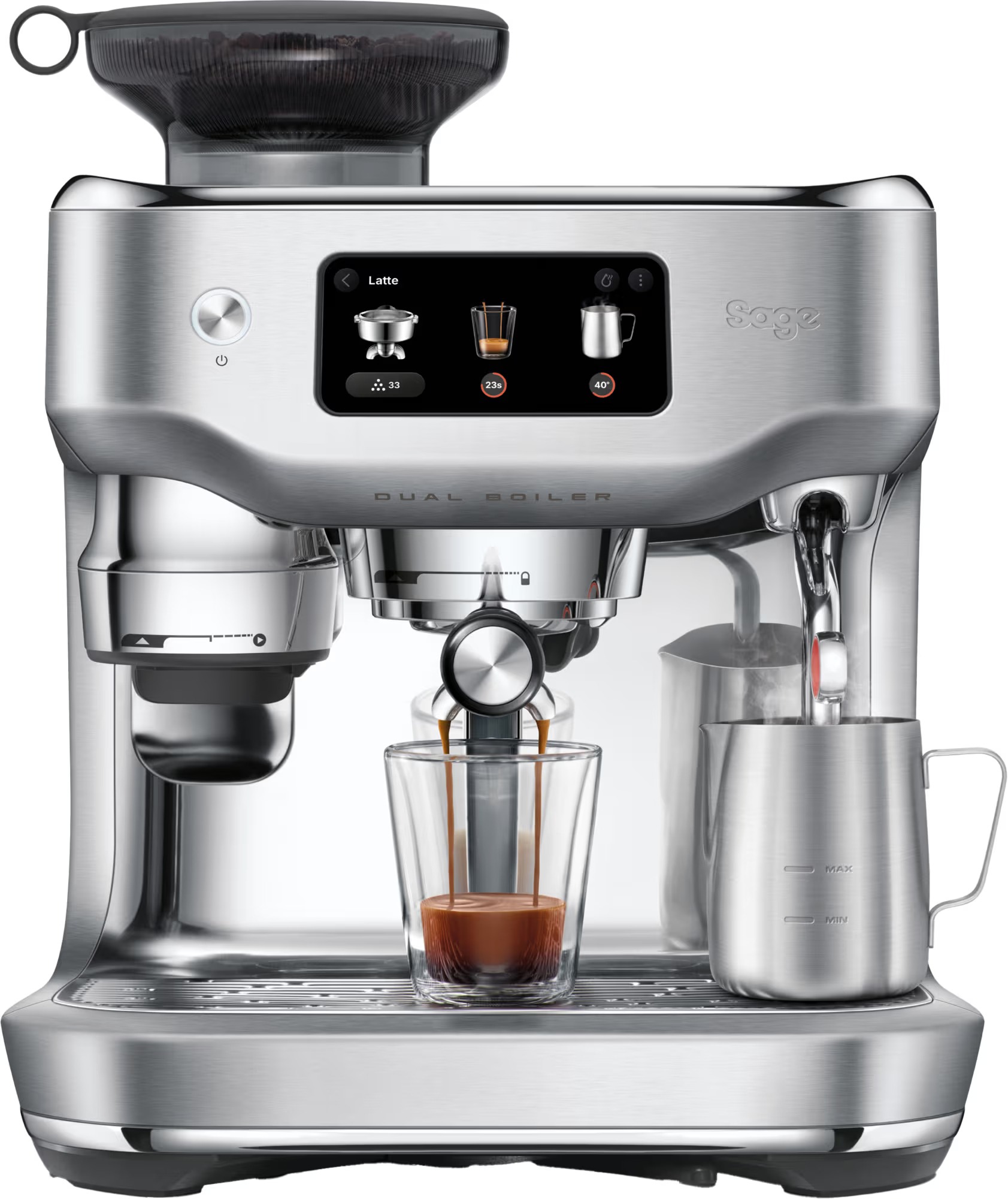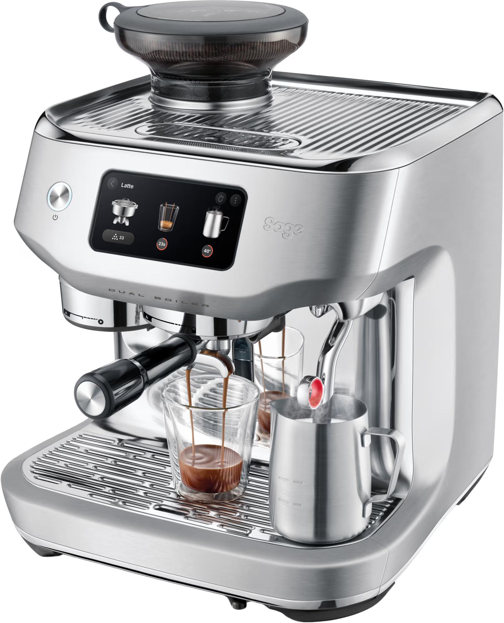 Kraftfuld Dual Boiler dobbeltkedel i rustfrit stål lader dig ekstrahere den perfekte espresso, samtidig med at du damper mælk. Det tredobbelte varmesystem har PID-temperaturkontrol, som opretholder en optimal ekstraktionstemperatur, justerbar i præcise indstillinger, så den passer til din smag.