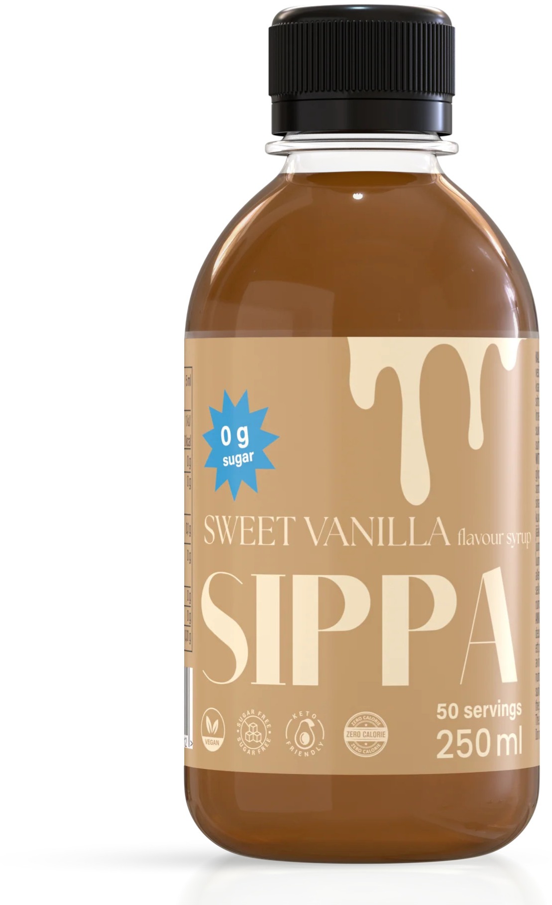 Nyd den klassiske smag af vaniljeis – helt uden kalorier! SIPPA Sweet Vanilla er en vegansk, ketovenlig, sukkerfri og kaloriefri smagssirup, der gør dine kaffedrikke, cocktails og bagværk herligt søde.