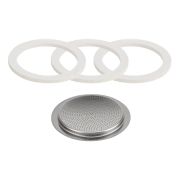 Pakken indeholder 3 pakninger og en filterplade til Bialetti Moka Express espressokande.