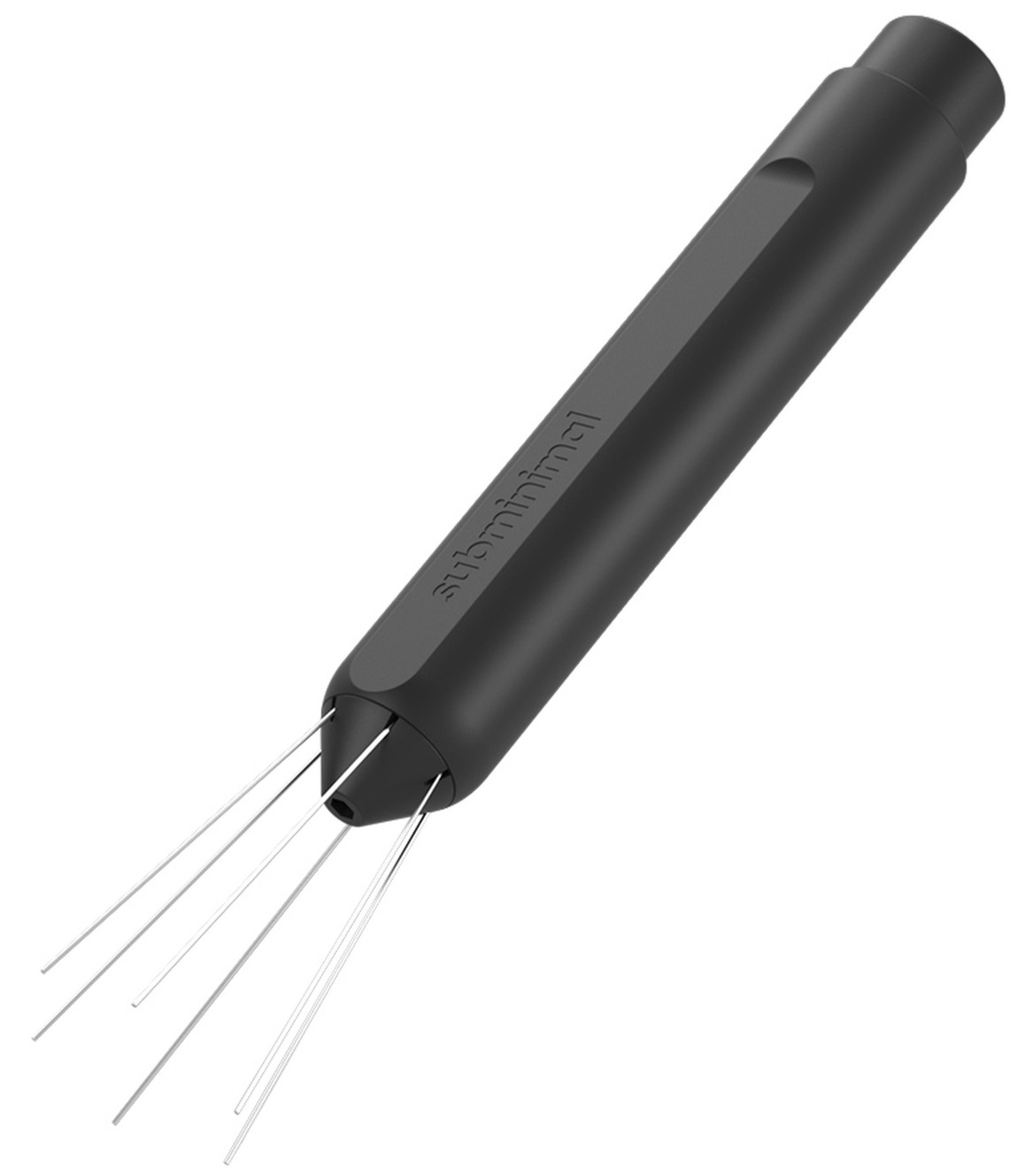 Subminimal Flick WDT-kaffeværktøjet er smart designet til at være både enkelt, sjovt og sikkert at bruge – takket være de indtrækkelige nåle bliver hver brygning en ren fornøjelse.