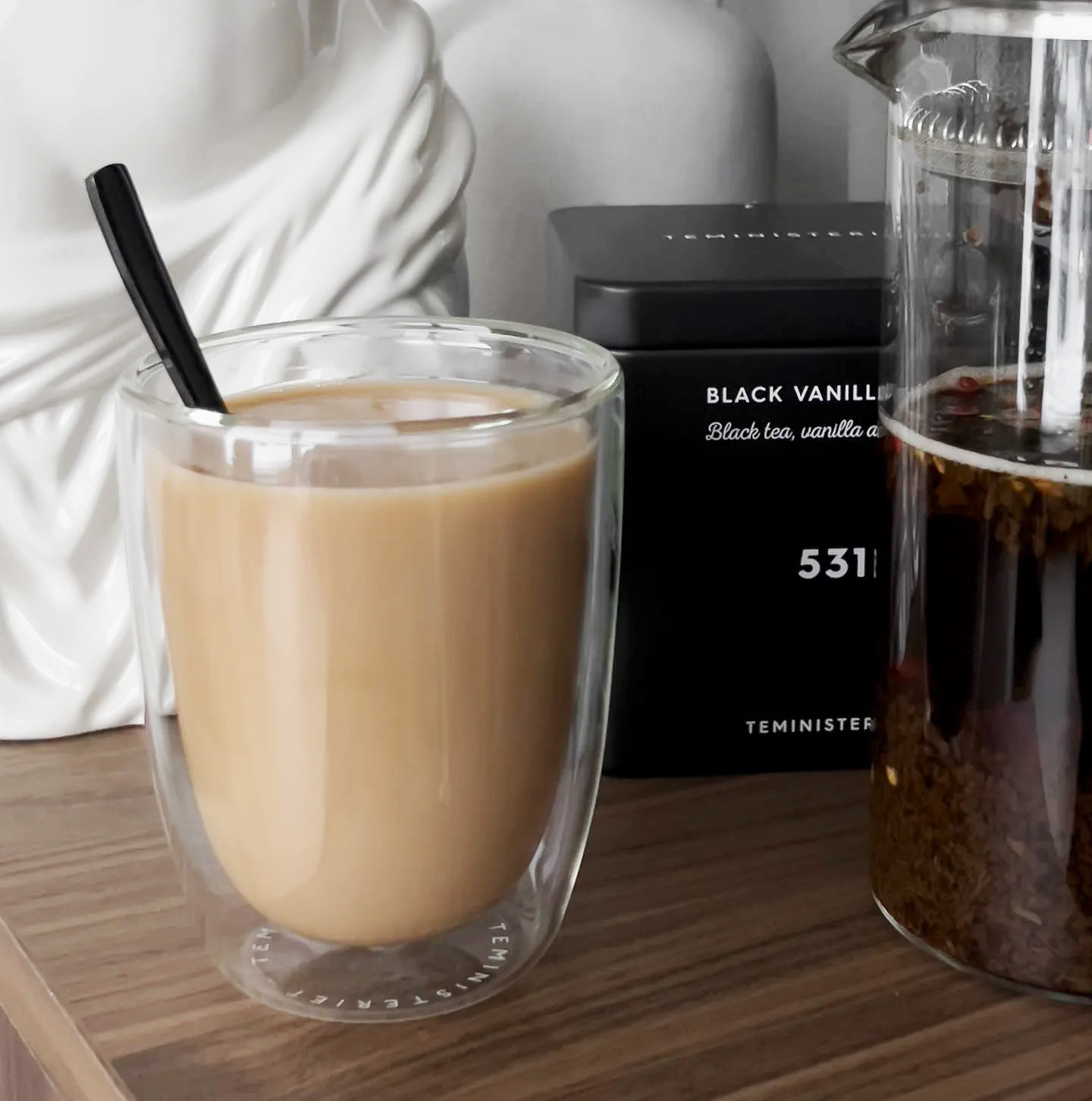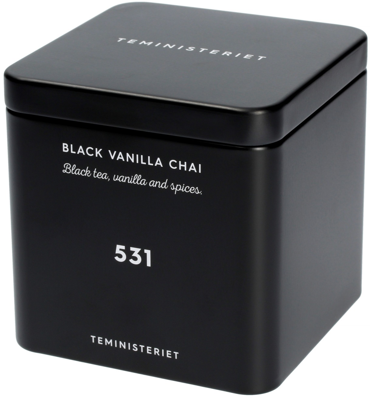 Teministeriet 531 Black Vanilla Chai blander sort te med klassiske chai-krydderier som kanel, kardemomme og ingefær, med et strejf af vanilje. Resultatet er en fyldig drik med en sød og krydret aroma. Velafbalanceret og smagfuld – en perfekt måde at starte dagen på.