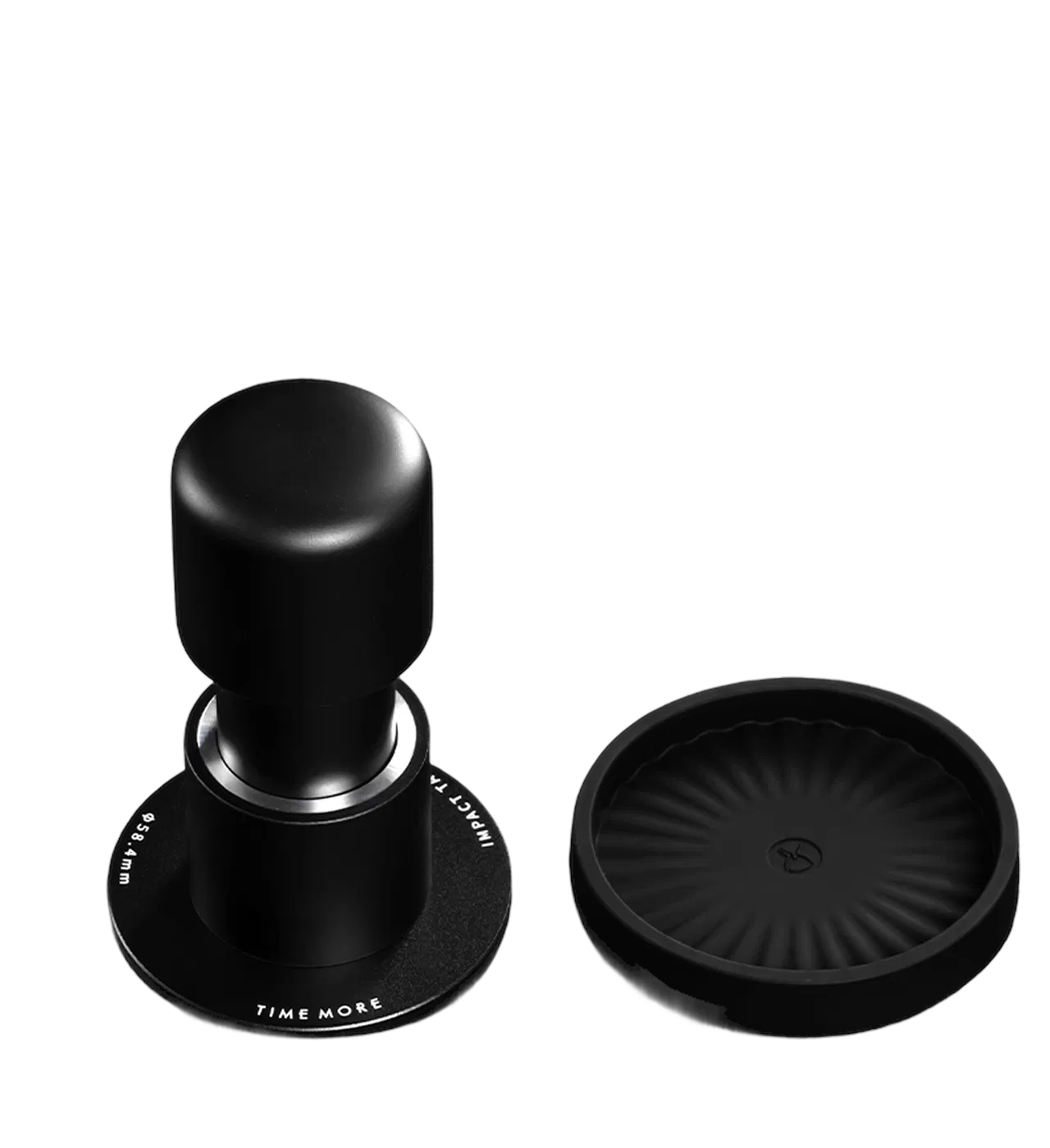 Timemore Impulse Impact-tamperen har en fjederbelastet slagmekanisme, der giver det samme tamperresultat hver gang, hvilket reducerer variationer og giver mere jævn ekstraktion. Det selvudjævnende design holder tamperen helt plan, mens den antivakuumbund løftes glat uden at forstyrre kaffepucken.