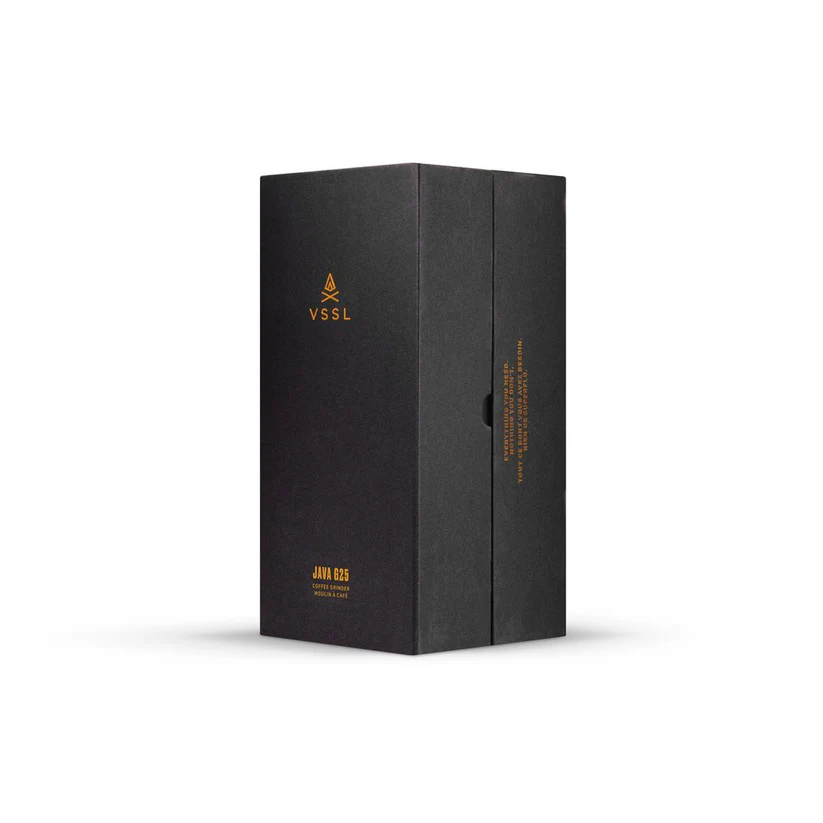 Med sit kompakte format passer Java G25 perfekt sammen med VSSL Nest Pour Over Kit og fungerer udmærket med AeroPress Go – ideel både til rejser og daglig brug.
