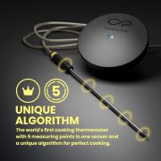 - Trådløs kødprobe med 5 sensorer og indbygget Wi-Fi – måler præcist både kødets og omgivelsernes temperatur