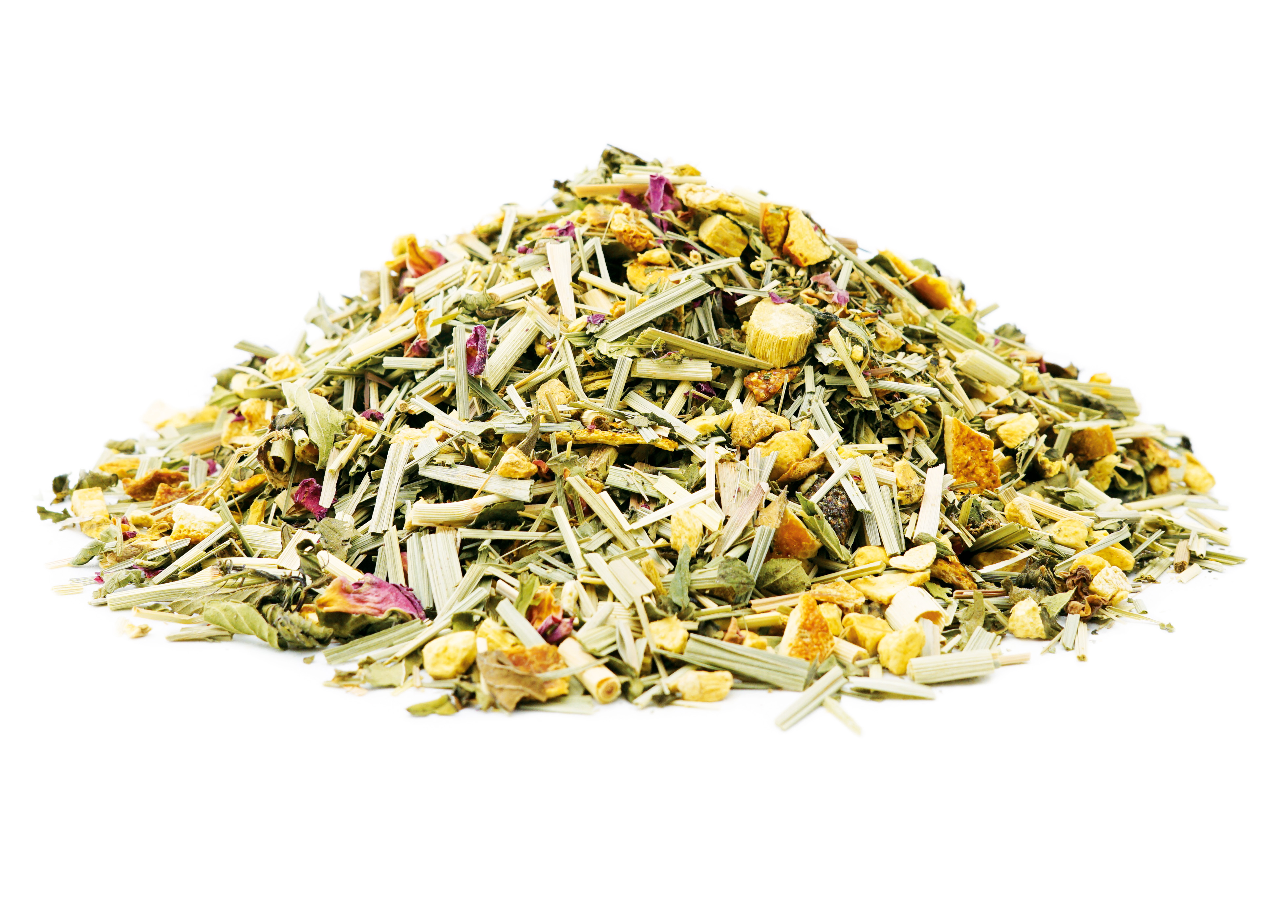Ginger (30 %), lemongrass (30 %), liquorice root, peppermint, lemon peels (9 %), orange peels, rose petals.