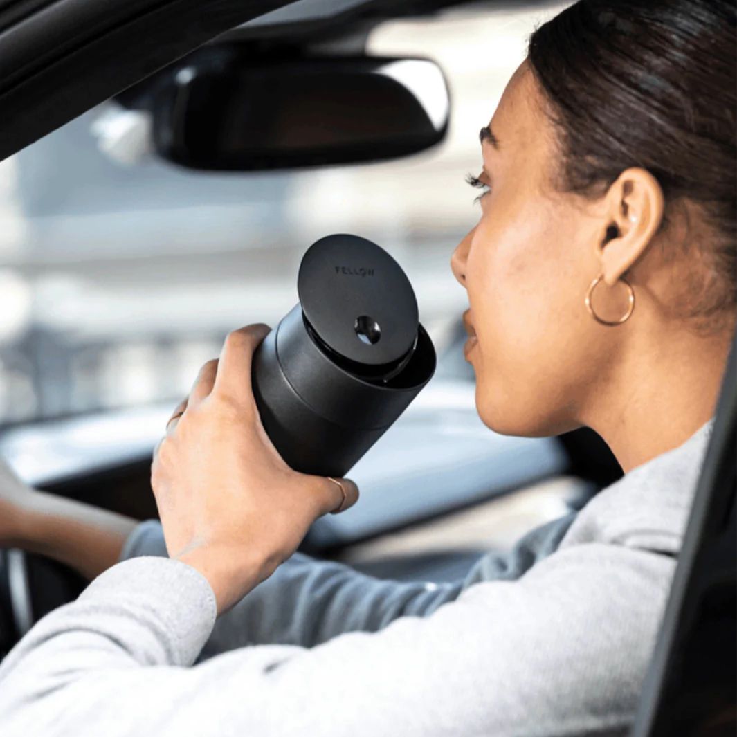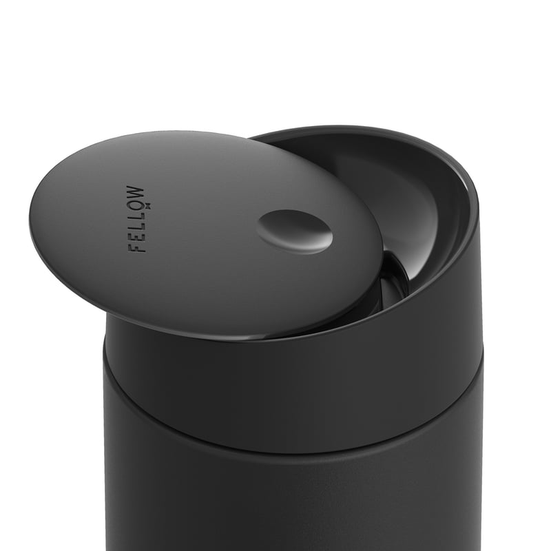 The Fellow Carter Slide Mug combines the base of the award-winning Carter Move Mug and the Slide Lid. The uniquely angled lid slides open with the flick of a thumb for mid-commute coffee breaks, then effortlessly slides back securing your drink and locking in heat and flavor.