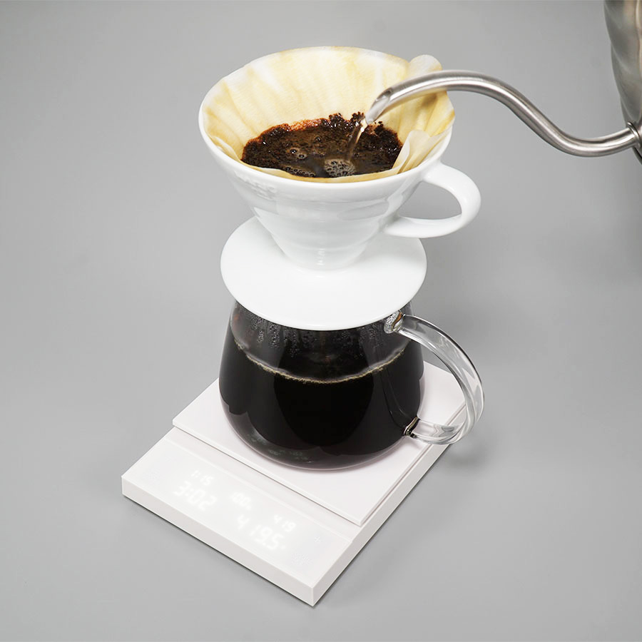 Hario POLARIS is an intelligent coffee scale that calculates the coffee-to-water ratio for perfect extraction and shows the extraction progress in real time.