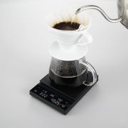A very handy coffee scale for the beginner. It conveniently works for measuring the amount of coffee and the required amount of water with different ratios for any need. Monitoring the amount of water in percentages makes it easier to prepare V60 regardless of how much coffee you make. The fact that the device operates on batteries is likely a plus in the long run instead of a short-lived battery. The only downside I would mention is the packaging, as there was no protective film on the scale's display.