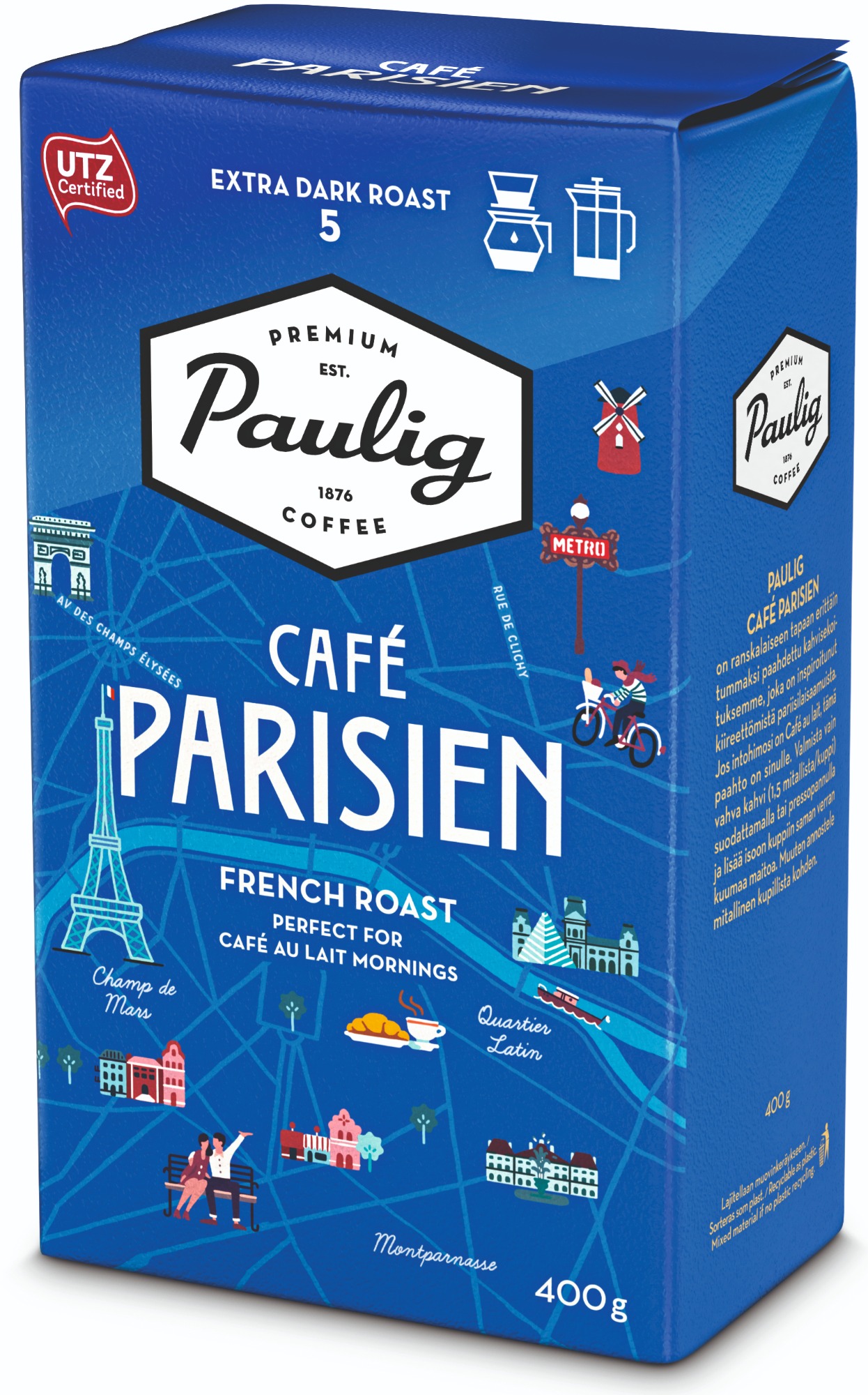 PAULIG CAFÉ PARISIEN is a very dark roasted coffee blend inspired by slow Parisian mornings.